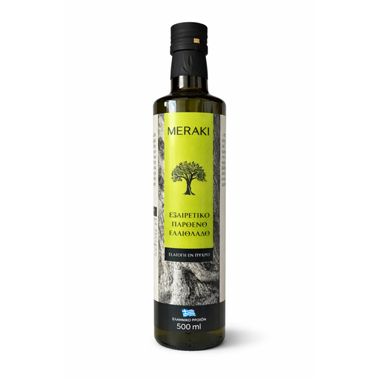 W greckiej kuchni oliwa nie jest dodatkiem „od święta”. Stoi na stole, ląduje na chlebie, w sałatce i na gotowym daniu, kiedy chcesz postawić kropkę nad i. Meraki to nasza marka własna w Spitiko — oliwa wybrana w tym duchu: prosto, domowo, ale z jakością, którą czuć w smaku.