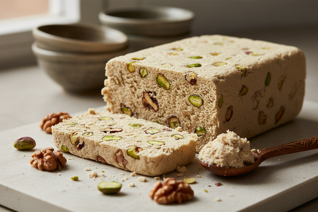 - sezamowa baza tahini → klasyczny smak greckiej chałwy