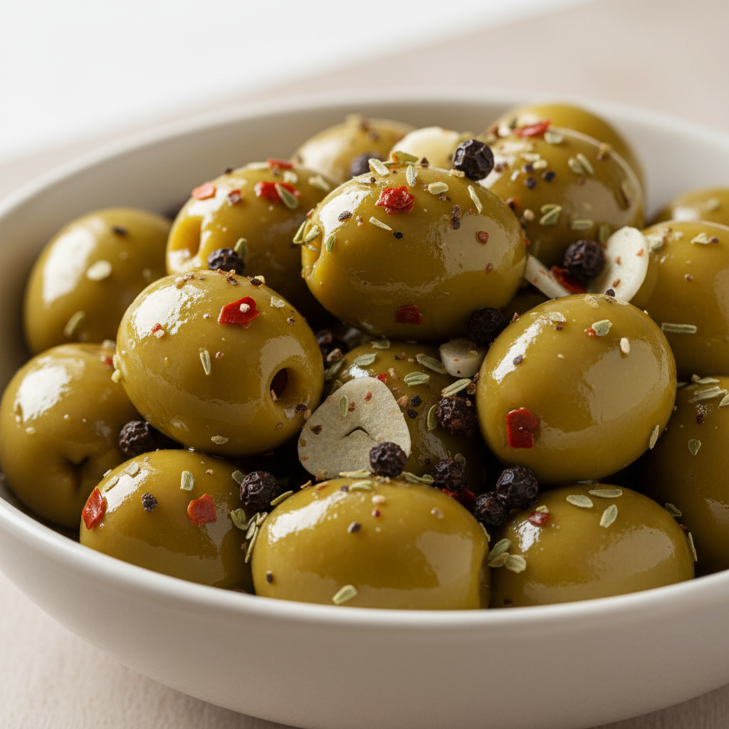 - jędrne zielone oliwki → dobra tekstura do przekąsek i sałatek